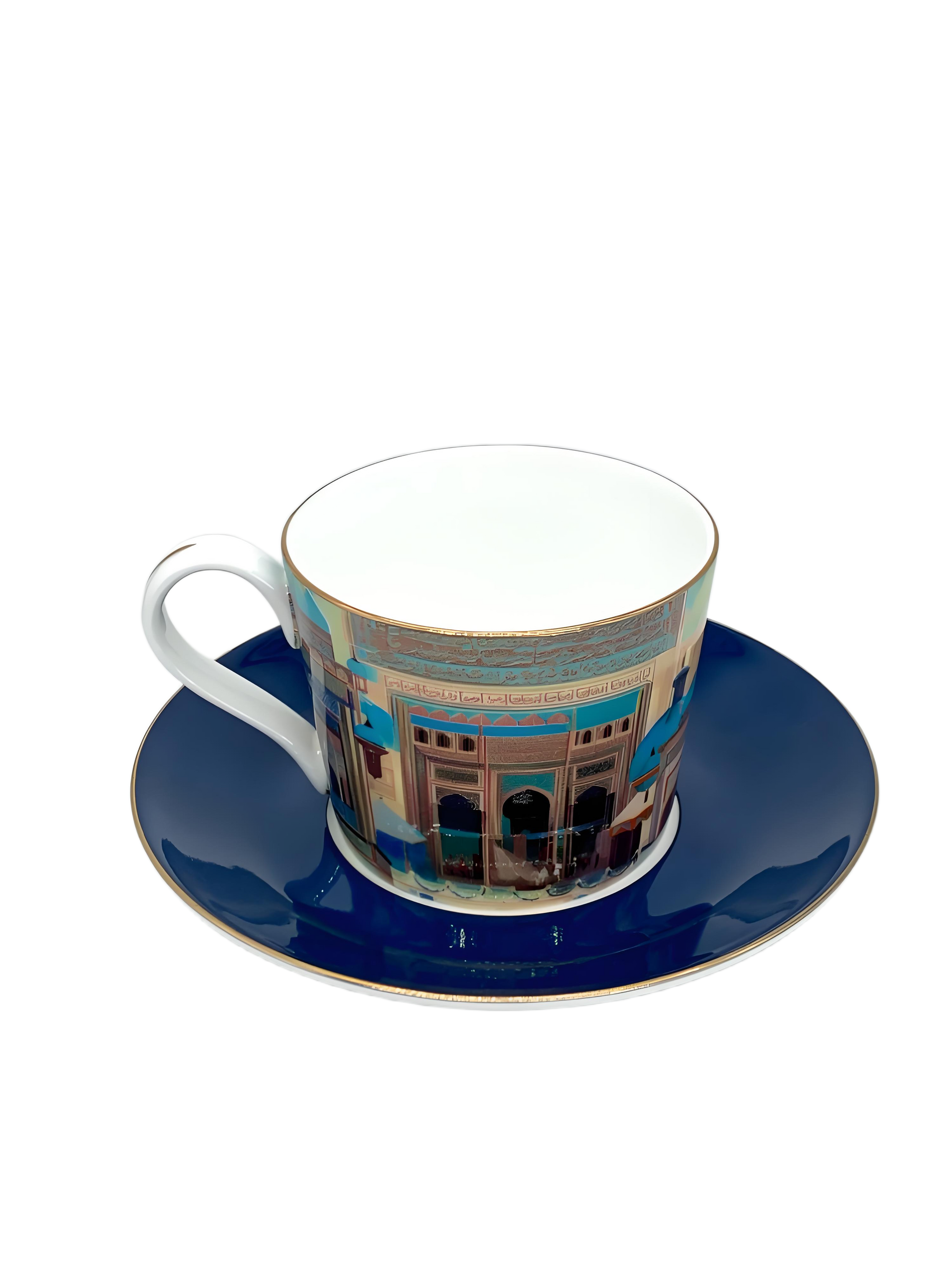 Inspired by the elegant arches of Arabian architecture, The Indigo Palaces teapot features intricate deep-blue patterns that reflect the tranquil beauty of the desert. The design evokes a serene scene of camels standing quietly in the shade, embodying the poetic stillness of desert life.
